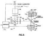 - During the entire frame period, which lasts from time t1 to time t4, visible polarized light propagating alongread path 104 and incident onOASLM 144 undergoes at each pixel location polarization rotation corresponding to Read Cell LC Voltage. This produces a gray scale image response of the visible light for display.