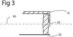 Alternativ könnte das zweite Bauteil 30 auch eine Kunststofffolie sein, also ein Kunststoffelement, dessen Längsausdehnungen deutlich größer sind als dessen Dicke. Diese Kunststofffolie könnte insbesondere aus COC, COP, PE, PS, PC und/oder PMMA bestehen. Diese Kunststofffolie könnte dabei vollflächig oder teilweise mit einem Glas bedampft sein, insbesondere mit SIOx.Alternatively, the