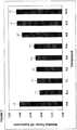 - Figures 2A-2B demonstrate that non-toxic efficacy increases with lipomer:siRNA mass ratios (MR) up to 15 in HeLa cells. A library of 750 compounds was tested, of which a select subset reduced gene expression.Figure 2A: Target gene expression for 750 lipomers tested at four different mass ratios at a dosage of 45 ng/well (20 nM). More lipomers reduce gene expression at a mass ratio of 10 and 15 than 5 and 2.5, as indicated by a larger curve "shoulder".Figure 2B: Average target (Firefly) and off-target (Renilla) expression for 200 lipomers tested against HeLa cells at a dose of 45 ng/well. Target gene expression decreases from 78% to 63% as mass ratio increases, while off-target expression remains fairly constant, changing from 88% to 86%.