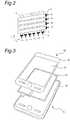 - The lower transparentelectrode base member 2 is configured by a quadrilateral film provided with a lowertransparent electrode group 6 on a surface (an upper surface of the lower transparentelectrode base member 2 shown inFig. 1, for example) facing the surface provided with the uppertransparent electrodes 5 at the predetermined position in thetransparent window 12. The lowertransparent electrode group 6 is formed by q (q is a positive integer equal to or more than two) lower transparent electrodes L1-Lq each having a rectangular shape and a longitudinal direction parallel to a Y axis as shown inFig. 2, andbus bars 20 each provided at an end in the longitudinal direction of the lower transparent electrodes. Preferably, the lower transparentelectrode base member 2 is transparent, supports the lowertransparent electrode group 6, and has electric properties (such as linearity) similar to those of a transparent electrode base member of an ordinary touch panel. Alower routing wire 6a is provided in theframe 11 in the quadrilateral frame shape at peripheral edges of the lower transparentelectrode base member 2 on a surface facing the surface provided with the upper transparent electrodes (an upper surface of the lower transparentelectrode base member 2 shown inFig. 1, for example) around the lowertransparent electrode group 6. Thelower routing wire 6a is made of silver or the like by printing, for example, and is connected to the bus bars 20 of the lower transparent electrodes L1-Lq. Thelower routing wire 6a is covered with an insulating resistlayer 8 except at portions to which theFPCs 17 are pressure-joined. The lower transparentelectrode base member 2 can be configured by, for example, engineering plastic such as polycarbonate-based, polyamide-based, and polyether ketone-based engineering plastic, or a resin film such as acrylic-based, polyethylene terephthalate-based, and polybutylene terephthalate-based resin film.
