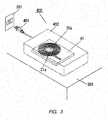 When secondary-sidenon-contact charging module 42 is wound aroundcamera module 106 as shown inFig. 33A, it is desirable to house at least a part of secondary-side coil 2b in a convex portion formed aroundcamera module 106 as shown inFig. 33B. The periphery ofcamera module 106 is sometimes formed in a shape projected to the outer side to enable a user to recognize the position ofcamera module 106 with a finger. Therefore, if at least a part of secondary-side coil 2b is housed in the convex portion formed aroundcamera module 106, it is possible to effectively utilized unused space, leading to a reduction in the size of entire portableterminal apparatus 100. Sincecamera module 106 andbattery pack 104 respectively have large thickness,camera module 106 andbattery pack 104 are not stacked on each other. Therefore, secondary-sidenon-contact charging module 42 is not stacked onbattery pack 104, leading to a reduction in the thickness of entire portableterminal apparatus 100.