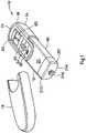 - Cartridge retainer 50 is hinged to the cartridge retainer housing at pivot bearing 612, whereascartridge retainer 52 is hinged to the cartridge retainer housing atpivot bearing 614. Thecartridge retainers 50, 52 are thereby pivotable about thepivot bearings 612, 614 between their closed and their open position.