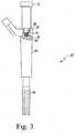 - As shown inFIG. 3, adistal end 32 of thesecond member 14 engages aproximal end 34 of thestem component 26. In tool shown in the drawings, thedistal end 32 of thesecond member 14 is threaded and fits inside a threaded bore of theproximal end 34 of thestem component 26. Alternatively, thedistal end 32 of thesecond member 14 may have the threaded bore and theproximal end 34 of the stem component may be threaded. Other known means of connecting pieces may be used. For example, an expandable collet may be used. Alternatively, the connection means may be a retractable button/recess system, an undercut, a slotted l-shaped recess and rod system, an expandable collet system, or any other known engagement system.
