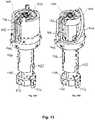 - InFig. 15, another auto injector according to an embodiment of the present invention is shown, comprising a cap orcasing 1, ahousing 2, askin sensor 3, a syringe tube orholder 4, andsyringe 5 having a rigid needle shield covering the needle in the stored position (not shown), aplunger rod 6 for acting on medicament in thesyringe 5, a plunger rod driver, or motor spring, 7, aplunger rod tube 8 encompassing at least a part of theplunger rod driver 7 and of theplunger rod 6, and a syringe driver, such as motor spring, 9 configured to act on at least thesyringe 5, and preferably on a syringe assembly comprisingsyringe tube 4,syringe 5,plunger rod 6,plunger rod driver 7 andplunger rod tube 8. A needle shield driver, such as a needle shield spring, 13, is configured to act on the needle shield/skin sensor 3. The auto injector further comprises a reloadhandle 11 and a reloadhandle top 12.