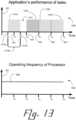 - Figures 13 and14 show timing diagrams that depict possible energy-consumption scenarios under an approach to monitoring and adjusting performance according to the scheme outlined in reference toFigures 3 and4 and detailed, in various embodiments, in reference toFigures 5 through 7.