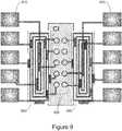 Le procédé de l'invention permet donc les reprises de contact individuelles sur chacune des couches conductrices 210 comme si les zones accessibles avaient été obtenues chacune séparément par photolithographie. Toute configuration électrique possible des capacités individuelles peut ainsi potentiellement être réalisée en une seule étape de photolithographie comme on va le voir ci-après et en particulier la mise en parallèle de ces dernières afin d'obtenir le maximum de capacité pour la surface du motif gravé.The method of the invention therefore allows individual contact resumptions on each of the