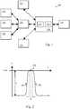 Fig. 10 schematically represents signal temporal shapes of an impulse response of the optical band-pass filter present on the optical path from the first device to the second device. Time is represented as abscissa (horizontal axis) and signal strength is represented as ordinate (vertical axis).