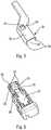 Autrement dit, le dispositif de l'invention est configuré pour que le ou les moyens de maintien 21, de sécurisation 24 et/ou d'activation 23 soient situés dans le prolongement de la face supérieure 22 de l'adaptateur 9. Encore autrement dit, la butée 24 est reliée par les bras d'articulation 25 à un corps de l'adaptateur 9, c'est-à-dire un bord opposé à celui relié à la surface avant 61, ceci à proximité de la face supérieure 22 de l'adaptateur 9. Lesdits bras d'articulation 25 autorisent l'escamotage de la butée 24 lors du montage et du démontage de l'adaptateur 9 dans la tête de bras 10.In other words, the device of the invention is configured so that the one or more holding means 21,