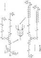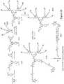 - Figure 19(B) shows an exemplary nucleotide analog comprising two avidin proteins. The two avidin proteins, e.g. streptavidin, are connected with a tetra-biotin compound having two bis-biotin moieties connected to one another through a trifunctional linker Sh. The trifunctional linker Sh is also connected to trifunctional linker T2 which has two dye moieties connected to it in which one dye moiety is a FRET donor connected through a linker X, and the other dye moiety is a FRET acceptor. The nucleotide analog has 12 phospholinked nucleotides with 6 phospholinked nucleotides attached to each avidin protein. The phospholinked nucleotides are for example dG connected through a hexaphosphate (dG6P). These are connected in groups of three to a tetrafunctional linker G, which is connected to the bis-biotin moiety through a trifunctional linker.