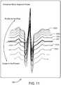 In some implementations, the layers can be scrolled forward or backward in time to provide an animation-like graphical representation of changes to the waveform segment of interest over time. For example, the layers can be scrolled forward in time, such that theprimary layer 1202 becomes the pastsecondary layer 1202c, the futuresecondary layer 1202a becomes theprimary layer 1202, the futuresecondary layer 1202b becomes the futuresecondary layer 1202a, and so on. As another example, the layers can be scrolled backward in time, such that theprimary layer 1202 becomes the futuresecondary layer 1202a, the futuresecondary layer 1202a becomes the futuresecondary layer 1202b, the pastsecondary layer 1202c becomes theprimary layer 1202, and so on.