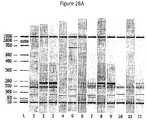 Experiment 18- If desired, the size and quantity of the PCR products can be analyzed using standard methods, such as the use of the Agilent Technologies 2100 Bioanalyzer (Figure 28A-M). For example, direct PCR methods described herein without nesting were used in 2,400-plex(Figures 28B-28G) and 19,488-plex experiments(Figures 28H to 28M). The amount of primer was 10 nM forFigures 28B-28Dand28H to 28J. The amount of primer was 1 nM forFigures 28E-28Gand28K to 28M. The amount of input DNA was 24 ng forFigures 28B,28E,28H, and28K; 80 ng forFigures 28C,28F,28I, and28L; and 250 ng forFigures 28D,28G,28J, and 28M. More input DNA resulted in a greater proportion of the desired 180 base pair product. The peak at 140 base pairs is a primer dimer product.