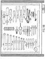 - Hence, a machine readable medium may take many forms, including but not limited to, a tangible storage medium, a carrier wave medium or physical transmission medium. Non-volatile storage media include, for example, optical or magnetic disks, such as any of the storage devices in any computer(s) or the like, such as may be used to implement the monitoring removal and replacement of tools within an inventory control system, etc. shown in the drawings. Volatile storage media include dynamic memory, such as main memory of such a computer platform. Tangible transmission media include coaxial cables; copper wire and fiber optics, including the wires that comprise a bus within a computer system. Carrier-wave transmission media can take the form of electric or electromagnetic signals, or acoustic or light waves such as those generated during radio frequency (RF) and infrared (IR) data communications. Common forms of computer-readable media therefore include for example: a floppy disk, a flexible disk, hard disk, magnetic tape, any other magnetic medium, a CD-ROM, DVD or DVD-ROM, any other optical medium, punch cards paper tape, any other physical storage medium with patterns of holes, a RAM, a PROM and EPROM, a FLASH-EPROM, any other memory chip or cartridge, a carrier wave transporting data or instructions, cables or links transporting such a carrier wave, or any other medium from which a computer can read programming code and/or data. Many of these forms of computer readable media may be involved in carrying one or more sequences of one or more instructions to a processor for execution.