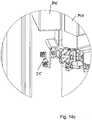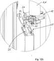 Nach dem Lösen dieser Schrauben, d.h. bevorzugt der in die Befestigungsteile eingepresst gehaltenen Schraubbolzen aufgedrehten Muttern wird die insoweit schon gelöste und nunmehr nicht mehr fixierte Mobilfunk-Komponente in Form eines Remote-Radio-Heads RRH aber gleichwohl immer noch in ihrer Lage gehalten, da die mit der zugehörigen Mobilfunk-Komponente MK fest verbundene plattenförmige zweite Verbindungseinheit 125 noch durch die umgebördelten Randabschnitte 25a und 25b am ersten trägerseitigen Verbindungsträger 21, also an der ersten Verbindungseinheit 121 gehalten wird. Dies eröffnet die Möglichkeit, dass erst nach dem Lösen aller Schrauben und Verbindungsmittel als nächstes die so schon gelöste und entsprechend vorbereitete Mobilfunk-Komponente in Form eines Remote-Radio-Heads RRH seitlich, d.h. bevorzugt parallel zur Schnittflächenebene, d.h. parallel zum Mast 1' und damit parallel zur Ebene der beiden parallel aneinander liegenden Verbindungseinheiten 121, 125 seitlich aus der Befestigungseinrichtung herausgeschoben werden kann, also in Seitenrichtung SR, wie dies zudem in zwei unterschiedlichen Seitendarstellungen gemäß Figur 6a und 7a zum einen und in einer axialen Draufsicht gemäß