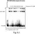 - Figure 9 shows that compounds can be developed that display different potency and selectivity profiles against different transcription factor:DNA complexes. Compounds tested at 2.5 µM for their inhibitory activity against c-Myc/Max/Ebox DNA, Max/Max/Ebox DNA and MITF/MITF/Ebox DNA complex formation using gelshift assays.