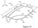 - Furthermore, in some embodiments at least one projection may have a constant curvature. In some embodiments, all such constant curvatures are different from each other. In other embodiments, some constant curvatures are the same. For instance, with reference to the above example with the first rounded corner and second rounded corners, the projection on the X-Y plane of the first rounded corner may in some embodiment have a constant curvature which may be defined as 1/r1, whereinr1 is the radius of a circular arc defining the projection of the first rounded corner. The projection of one of the second rounded corners may be defined as 1/r2, whereinr2 is the radius of a circular arc defining the projection of the second rounded corner, and whereinr1 is different fromr2.