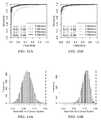 - Figure 5 shows the measured biomarker distributions for CDH1 as a cumulative distribution function (cdf) in log-transformed RFU for the asbestos exposed individuals combined (solid line) and the mesothelioma disease group (dotted line) along with their curve fits to a formal cdf (dashed lines) used to train the naïve Bayes classifiers.