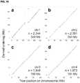 - FIG. 13 showsLACHESIS ordering and orienting results on the 4 groups of contigs in the Drosophilade novo assembly according to some embodiments. For each ordering, only the contigs on the "dominant chromosome" - that is, the chromosome containing the plurality of aligned sequence - are shown (seeFIG. 44). Also listed in each panel are the identity of the dominant chromosome, the number of contigs in the derived ordering, and the reference length of the dominant chromosome.