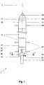 Die Vorrichtung 1 lässt sich dank der radialen Abstandshalter 28 zentriert innerhalb der Bohrung 4 einsetzen. Von Vorteil hierbei ist, wenn ein Pegelrohr 30 an den radialen Abstandshaltern 28 angebracht ist und hierbei parallel zu den Vollrohren 10 verläuft. In dieser Weise bilden die Vorrichtung 1 mit ihren Vollrohren 10 und das Pegelrohr 30 eine Einheit, die gemeinsam - zwecks einer vereinfachten Montage - in die Bohrung 4 des Brunnens 2 eingebracht werden können.Thanks to the