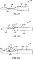 - While the cannula and needle strike surfaces 140, 148 depicted infigures 21A-25B form wedges/ramps, the cannula and needle strike surfaces 140, 148 can take any form, as described above. While the cannula and needle strike surfaces 140, 148 depicted infigures 21A-25B are offset from the middle of the longitudinal axis of the shaft 100 (while being longitudinally aligned with the first and second arms 136,138 when isshaft 100 is not deflected), the cannula and needle strike surfaces 140, 148 can be disposed along the middle of the longitudinal axis. The form and location of the cannula and needle strike surfaces 140, 148 can vary as long as they are configured to cooperate with respective first andsecond arms 136, 138 such that when thefirst arm 136 engages thecannula strike surface 140, theproximal end 118 of theshaft 100 is moved so that thesecond arm 138 does not engage theneedle strike surface 148 during that stroke. Further, the form and location of theproximal end 118 of theresilient shaft 100 can vary as long as it includes features (e.g., first andsecond arms 136, 138) configured to cooperate with respective cannula and needle strike surfaces 140, 148, as described above. For instance, theproximal end 118 of theresilient shaft 100 may be similar to theproximal end 118 depicted infigure 16.