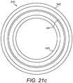 - Figures 21a to 21c show structural details of a sixth biasing and dampingelement 545, which is typically comprised of a polymeric material, and which also may be appreciated to be an alternative to the biasing and dampingelement 45 ofFigures 15a to 15d. The sixth biasing and dampingelement 545 defines acentral ring form 549. Within the cassette unit, thisring 549 is sized and shaped to fit about theforward skirt 42 of the end-cap 40 and when theplunger slaving part 60 is engaged with the end-cap 40 (e.g. essentially as shown atFigures 2 and13) about the outercircumferential wall 62 of the plunger slaving part 60.Therear face 546a of theforward part 546 of the sixth biasing and dampingelement 545 defines an essentially flat profile, which allows it to seat up against the inner end wall of the end-cap 40 where it is held in place by the through-molding viaholes 44 on the inner wall of the end-cap 40 with through-legs 544a on therear part 548 of the biasing and dampingelement 545. A circular collapsible V-form damping projection 547 extends forwards from the biasing and dampingelement 545 and connects with the rear end of thesyringe flange 16, thereby biasing it forwards.