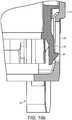 - As also shown atFigure 36c, in the intermediate pre-docking position, pushing member in the form ofpin 78 is spaced from thecassette 1, but locates immediately above protrudingarms 31 of theinner housing sleeve 30, which are thus accessible to it via cut-awayapertures 51 of the cassette unit end-cap 40. More typically, a spaced pair ofpins 78 would be provided. It will be appreciated that relative movement of thecassette 1 towards the pin 78 (e.g. to the position of third stage of a typical use operation ofFigure 36d, as described below) will result in receipt ofpin 78 into cut-away aperture 51 of the cassette unit end-cap 40 such as to bringpin 78 into pushing contact with protrudingarm 31 of theinner housing sleeve 30 to thereby push theinner housing sleeve 30 and theshuttle lock control 32 forward.