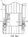 - Figure 34c shows thecassette unit holder 75 moved further forwards such as engage thecams 88a, 88b and to rotationally drive therounded heads 89a, 89b of eachcam 88a, 88b into a 'head bowed' position. When in this 'head bowed' position, thecams 88a, 88b may interact with the engagingtips 95 of lockingarms 99 of thecassette unit housing 20 out of locking engagement with the locking aperture and thus, to allow thecassette unit 1 to be released from thecassette unit holder 75. The position, which is the forward-most position of the cassette unit holder in use, corresponds to that, in which thecassette unit 1 may be ejected from thedrive unit 70 after injected use, as further shown atFigures 35i and36i.