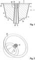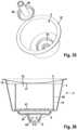 Die Kapsel verfügt noch über ein Trennwandrohr 15 mit umlaufenden Übergangsöffnungen 18, wobei das Trennwandrohr die Abschlussplatte 37 überragt und am oberen Rand mit dem Deckel 5 verschweisst ist. Selbstverständlich könnte die hier gezeigte Gestaltung des Auslaufrohrs mit der Abschlussplatte auch mit alternativen Kapselkörpern realisiert werden, insbesondere könnte dabei das Trennwandrohr auch wegfallen. Das Trennwandrohr 15 ist vorzugsweise auf einer tieferen Ebene angeordnet, als der umlaufende Rand 22.The capsule also has a dividing