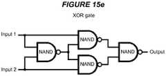 - Figures 15a to 15e illustrate various arrangements of NAND gates to form other logic gates.