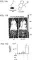 - Figure 6A is a schematic for near-IR dye modification of alginate.Figure 6B is a set of fluorescence images of mice injected retro-orbitally with near-IR-dye-labeled (745 excitation, 820 emission) alginate. Images were taken ondays 1, 8 and 22 post-injection.Figure 6C is a graph quantifying in vivo epi-fluorescence over four weeks in the blood by measuring snout fluorescence. Values represent mean and standard deviation. N=5.Figure 6D is a set of fluorescence images of internal organ two days after injection. These images illustrate the fate of IV-injected alginate in vivo.