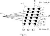 - In the example of the spot sequence shown inFig. 10, the spot energy E(i) is a strict decreasing monotonic function from 200 MeV down to 175 MeV. However, the invention is not limited to a strict monotonic decreasing energy function (or a strict monotonic increasing energy function), the sequence can for example comprise subsequent spots having the same associated energy.