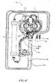 - Fig. 35 shows a rear perspective view ofdrain cassette 815. Malefluidic connector 830 is arranged to connect to amating connector 830a onfront panel 811, which is connected to a drain line. Malepneumatic connector 831 is arranged to connect to amating connector 831a onfront panel 811, which is connected to a pneumatic pressure line. Maleelectrical connector 833 is arranged to connect to amating connector 833a onfront panel 811, which carries electrical connections from thermal and/or conductivity sensors inhousing 828 to a system controller in a rear portion ofdialysis unit 51.Latch member 837, connected to handle 821, is arranged to insert into a keyhole offront panel 811 in order to engage and lockdrain cassette 815 ontofront panel 811.