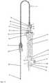 Die Kartusche 1 und das Rohr 3 sind an einer Überwurfmutter 10 miteinander verbunden. An der Kartusche 1 ist im Bereich des Kartuschenkopfs 10, der dem Kartuschenboden gegenüberliegt, ein zu einem Innengewinde der Überwurfmutter 10 passendes Außengewinde vorgesehen, auf das die Überwurfmutter 10 mit dem Innengewinde aufgeschraubt werden kann. Das Rohr 3 ist mit der Kartusche 1 verbunden, indem es auf einen Stutzen 32 (siehe