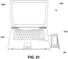 - In a particular aspect, as shown inFIG. 18, thePCD docking station 1800 may further include aneject button 1830. Theeject button 1830 may be incorporated into thePCD docking tray 1810. Alternatively, theeject button 1830 may be incorporated into thePCD docking station 1800 adjacent to thePCD docking tray 1810. When theeject button 1830 is pressed, thePCD docking tray 1810 may be moved from the closed position to the open position. In the open position, thePCD 100 may be docked with and supported by thePCD docking tray 1810.