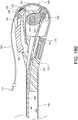- In this embodiment, the firstcurved arm 184, ofneedle 176, also includes afirst release ramp 192 adjacent to the firstferrule engaging tip 186. Similarly, the secondcurved arm 188 also includes asecond release ramp 194 adjacent to the secondferrule engaging tip 190. The first and second release ramps 192, 194 enable a portion of a ferrule release feature (not shown here, since it is not part of the needle) to be biased against the first and secondcurved arms 184, 188, and depending on a rotational position of theneedle 176, the ferrule release feature can ride up the first and second release ramps 192, 194 to push a ferrule off of each of the first and secondferrule engaging tips 186, 190.