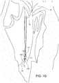 - As shown inFIG. 13E, the needle is actuated so that the first and secondcurved arms 184, 188, and their respective ferrule engaging tips, pass through theannulus 222 in the tissue bite area and engage the corresponding first andsecond ferrules 200, 202. As shown inFIG. 13F, the needle is then reverse-actuated so that the first and secondcurved arms 184, 188 and their respective ferrule engaging tips and therespective ferrules 200, 202 held by those ferrule engaging tips are pulled back through theannulus 222 in the tissue bite area and into a retracted position again. Since the ends ofsuture 208 are coupled to theferrules 200, 202, thesuture 208 is also pulled through theannulus 222. Thedevice 138 can be pulled back 226 to tighten aportion 228 of thesuture 208 against thepledget 224, and ultimately against theannulus 222.