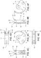 - As noted above, theflywheel portion 87 defines anactuator coupler 72. In this embodiment, theactuator coupler 72 is accessible in a first direction, parallel to thepivot axis 82 of theneedle 74. This access to theactuator coupler 72 in the first direction may be seen in the views ofFIGS. 4A and 4F. Theactuator coupler 72 is also accessible in a second direction, perpendicular to thepivot axis 82 of theneedle 74. In this embodiment, theflywheel portion 87 also defines anactuator access slot 100 which also facilitates access to theactuator coupler 72 in the second direction. Access to theactuator coupler 72 may be important in some embodiments so that the actuator end effector on the actuator rod (neither item shown here, since they are not part of the needle) may be coupled to theneedle 74 and so that the actuator (via the actuator rod in this example) can rotate theneedle 74.