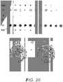 - Figure 14 illustrates a test array format. Two separate arrays are printed, one for anti-AFP capture spots and AFP calibrator and one for soluble anti-AFP detection spots. The order in which these two arrays are exposed to analyte solution are alternated-blood initially contacts capture spots first in panel A, and detection spots first in panel B.
