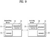 FIG. 9 is a block diagram illustrating a transmittingdevice 10 and a receiving device 20 configured to implement embodiments of the present invention. Each of the transmittingdevice 10 and receiving device 20 includes transmitter/receiver 13, 23 capable of transmitting or receiving a radio signal that carries information and/or data, a signal, a message, etc., amemory 12, 22 configured to store various kinds of information related to communication with a wireless communication system, and aprocessor 11, 21 operatively connected to elements such as the transmitter/receiver 13, 23 and thememory 12, 22 to control thememory 12, 22 and/or the transmitter/receiver 13, 23 to allow the device to implement at least one of the embodiments of the present invention described above.