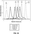 - FIG. 33 shows overlays of SEC chromatograms of three aHer2-XTEN(Cys)-AF680 conjugated fusion proteins with three different XTEN; AE864, AE576, and AE288 (top to bottom), performed as described in Example 41. The chromatograms show that theAlexa Fluor 680 was successfully conjugated to the aHer2-XTEN(Cys) protein as the retention time of the absorbance of the Alexa Fluor 680 (A690) overlaps with that of the aHer2-XTEN(Cys) protein (A280) for all three samples, and that the constructs eluted in a proportional fashion relative to length of the XTEN component. Note that dye retention time is significantly shifted from the expected elution time of free dye at ~52 minutes. Additionally, the relative lack of material that elutes ahead of the various aHer2-XTEN(Cys) peaks indicates a lack of aggregation and a monodispersed product.