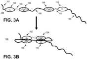 - FIG. 3 shows schematic representations of an exemplary monomeric diabody binding fusion protein that can form two antigen binding sites.FIG. 3A shows the configuration of a diabody binding fusion protein (108) with the two targeting moieties in a "relaxed" conformation, each comprising an N-terminal XTEN sequence (101), a first VL binding domain sequence (102), a short linker sequence joining the adjacent VL and VH (103), a first VH binding domain sequence (104), a second linker sequence joining the first and the second targeting moieties (106), a second VH binding domain (109) intended to pair with the first VL binding domain (104), a second VL (110) intended to pair with the first VH (104) and an XTEN carrier sequence (105) at the C-terminus.FIG. 3B shows the flexible middle linker permitting two binding domains (VL and VH) from the opposite ends of the molecule (rather than the two adjacent binding domains that are constrained because of the short linker) to come into association to form the two antigen binding sites, resulting in two diabody targeting moieties within the monomeric binding fusion protein.