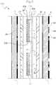 -  asheet 34 with a hole (with arecess 34a) around the periphery of the first OLED device and (slightly) thicker than the front face of thesubstrate 20;
