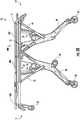 - Referring again toFIG. 6, thecot 10 is provided with a pair offront loading wheels 70 projecting downwardly from the outermost ends of side frame sections. Also projecting downwardly from the outermost ends of the side frame sections is a front-side bail 72. In the depicted embodiment, the front-side bail 72 is a generally U-shaped tubular member. The front-side bail 72 is spring biased into the generally downward-extending position depicted inFIG. 6. In this position, the front-side bail 72 is configured to engage a tongue-like floor fitting that is mounted on the floor of the emergency vehicle when the front-side bail 72 translates in a direction corresponding to removing thecot 10 from the emergency vehicle. The front-side bail 72 is adapted to deflect away from the floor fitting when translating in a direction corresponding to loading thecot 10 into the emergency vehicle, thereby allowing thecot 10 to be loaded into thecot 10 without requiring the attendant to manually release the front-side bail 72.