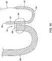 - Each of the plurality ofvalve leaflets 68 may be positioned "behind" (e.g., radially inward from) the reinforcing band 32 (e.g., the fabric strip, etc.) and extending longitudinally downward from theseal member 30 and/or the reinforcing band 32 (e.g., the fabric strip, etc.), as seen from the outside (and as shown inFIGS. 8-9). The skilled artisan will recognize that the assembly process may be performed in an inverted orientation with the plurality ofvalve leaflets 68 extending upward and the relative orientations of elements as discussed herein reversed and/or shifted 180 degrees.