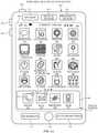 An exemplary set of one or more representations of user interface objects available to be added to the user interface of the peripheral display unit is the set of icons intray 670 inFIG. 6N. In some embodiments, representations of available user interface objects represent icons that can optionally be added to the peripheral interface, such as icons corresponding to new applications or new functions that have been downloaded by a user of the device or a user of the peripheral display unit. In some embodiments, the representations have been pushed to the configuration interface by a back-end operator of the configuration interface, such as a developer associated with the device or the peripheral display unit.
