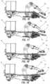 - FIG. 2 illustrates that theupper arm assembly128 includes arotatable gantry220 having therear end130 pivotally attached at theupper arm axis134 to the left and rightlower arms120. Therotatable gantry220 has a lateral guide222 at anextended end224. Theupper arm assembly128 includes anend arm226 proximally attached for lateral movement to the lateral guide222 of therotatable gantry220 and distally attached to themanipulator head136. Theend arm226 laterally translates to reach an increased lateral area. Thereby a lighter weight and moremaneuverable manipulator head136 can be employed.FIGs. 2 - 3 illustrate thetelescoping beam144 of thelift140 and the built-in jackingapparatus166. A nose tiltinghydraulic actuator225 is mounted between thetelescoping beam144 and a forward end of thefront portion142 of theconveyor system110. A drive belt motor227 is mounted to thetelescoping beam144 to extend and to retract thetelescoping beam144.