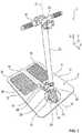 Im Bereich der Hinterkante 16 weist die nachfolgend auch als Standfläche bezeichnete Oberseite 6 zwei rechteckige Fußmatten 38 auf. Im Betrieb platziert ein Benutzer hierbei vorzugsweise jeweils einen seiner Füße auf jeweils einer der Fußmatten 38. Die Fußmatten 38 sind aus einem Gummimaterial hergestellt und weisen ein rautenartiges (Stand-)Profil zur Verbesserung der Standsicherheit des Benutzers auf.In the area of the
