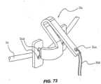 - When (re-)positioned at a desired location and/or when a desired degree of locking has been achieved, the lateral unlocking force may be removed fromratchet tooth 450 to again lockanchor lock element 34 to post 32 along ratchetinglock elements 440, as inFigure 76E. To complete deployment ofapparatus 10,adjustment actuator 500 andactuator 106b, as well as actuator 106a (not shown), may be separated from the apparatus. InFigure 76F,release element 520 ofactuator 500 is proximally refracted relative toadjustment element 510, thereby removingelongated member 521 ofrelease element 520 fromunlock actuator attachment 454 ofanchor lock element 34. This removes the interference fit betweennotch 518 andattachment 454. Proximal retraction ofactuator 500 relative to anchorlock element 34 detachesadjustment element 510 ofactuator 500 fromattachment 454 ofanchor lock element 34, as inFigure 76G.Optional camming surface 519 alongnotch 518 may facilitate such detachment. InFigure 76H,actuator 106b is detached frompost 32 by retractingrelease actuator 112 relative to the actuator, as described previously.