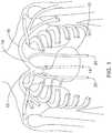 - The alternative inFigure 6B allows access from either superior or inferior positions while preserving the upper thoracic vasculature. An advantage over the approach ofFigure 6A is that the use of a suture sleeve attachment withFigure 6B would occur on the fascia over the ribcage near the intercostal access point, making suture sleeve use easier and avoiding movement between the point of venous system entry and the point of fixation. On the other hand, a user may be more comfortable accessing the veins at a location where the ribs and intercostal muscles do not interfere; thus, each of the various approaches herein has advantages and disadvantages relative to one another.