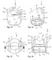 - Referring now more in detail toFigs. 6a and 6b, on the outer surface of preferably each of theflexible wall sections 54a alongitudinally extending groove 54b is provided. Thegroove 54b runs preferably parallel to the central axis C and is located preferably in the center of theflexible wall section 54a seen in the circumferential direction around the central axis C. Thegrooves 54b serve for cooperating with a portion of thelocking ring 8 described below. On the protrudingouter rim 55 thegrooves 54b are widened in a circumferential direction to form widenedportions 54c. These widenedportions 54c may facilitate the mounting of thelocking ring 8. It shall be noted that while in the embodiment eachflexible wall section 54a comprises agroove 54b, it is sufficient that at least one or a reduced number, for example every second,flexible wall section 54a comprises such agroove 54b to permit thelocking ring 8 exerting pressure onto the head 3and/or thepressure member 7 when thelocking ring 8 is rotated. Thegrooves 54b may be shallow and may have a cylinder-segment shaped cross-section but can also have any other cross-section that permits to catch and release a corresponding structure provided at thelocking ring 8.