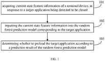 - Current state feature information of a terminal device is acquired, when a target application is detected to be closed. The current state feature information is input into a random forest prediction model corresponding to the target application, where the random forest prediction model is generated based on a usage regularity of the target application corresponding to historical state feature information of the terminal device. Whether to preload the target application is determined according to a prediction result of the random forest prediction model.